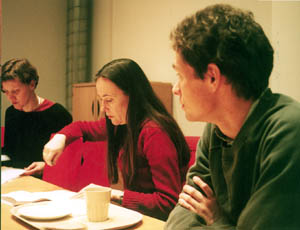Siri Reuterstrand, Susanna Slöör och Håkan Lindgren i ett historiskt ögonblick på Kulturhuset. På bilden överst på sidan ses Sophie Mauleon Larsson.
