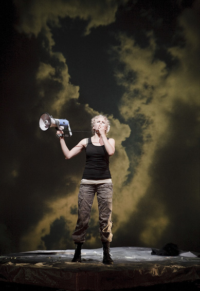 TB: I Anna Sjövalls uppsättning av »Jösses flickor – Återkomsten« av Garpe/Osten och Malin Axelsson, befinner vi oss i ett helt annat slags teater. Min främsta invändning mot den föreställningen var att den bekämpade sig själv. Det första stycket, »Jösses flickor«, som ju är en brechtianskt inspirerad, feministisk kamppjäs, fick kraft av att det beskrev landvinningar som faktiskt gjorts. Skildringen av kvinnorna var rak, tog upp de motsättningar som fanns i deras liv, både gentemot kollektivet och i de praktiska konflikter som kunde uppstå privat när de skulle leva efter sina ideal. I Sjövalls tolkning (och Malin Axelssons bearbetning) fanns en kärleksfull humor och tydlig berättarstil som även beaktade de politiska, sociala och estetiska förändringar som skett sedan 1974, då pjäsen uruppfördes. Därigenom blev den inte ett plakatteatermonument över kvinnofrigörelsen.