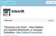 För de av er läsare som har Twitter finns ett enkelt sätt att hålla kontakt med oss och få veta vad som händer på tidskrift.nu: att följa oss här.